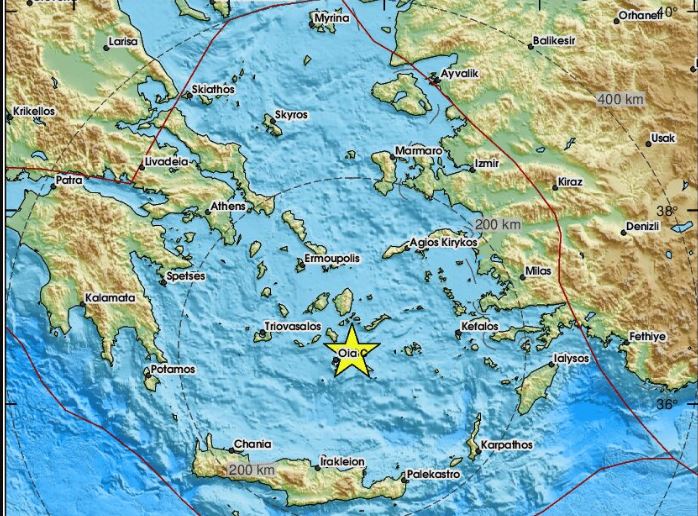 Kako je saopćio EMSC, zemljotres se dogodio na dubini od 10km, a epicentar je bio u blizini sela Oia na otoku Santorini.