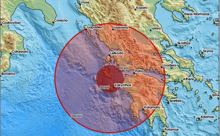 Epicentar potresa zabilježen je na dubini od 10 kilometara, približno 32 kilometra jugozapadno od grada Argostólion i oko 137 kilometara jugozapadno od Patrasa.