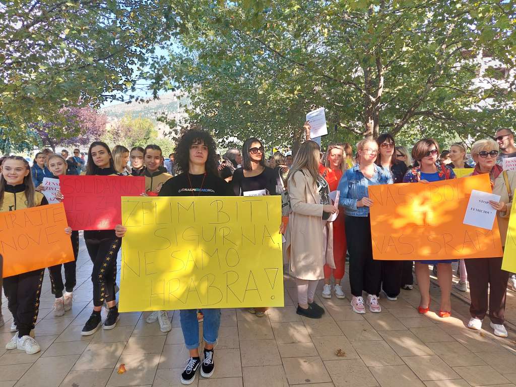 Građani Mostara okupili su se u petak na Španjolskom trgu u Mostaru u znak protesta zbog ubojstava žena, potaknuti nedavnim slučajem femicida u Bihaću.