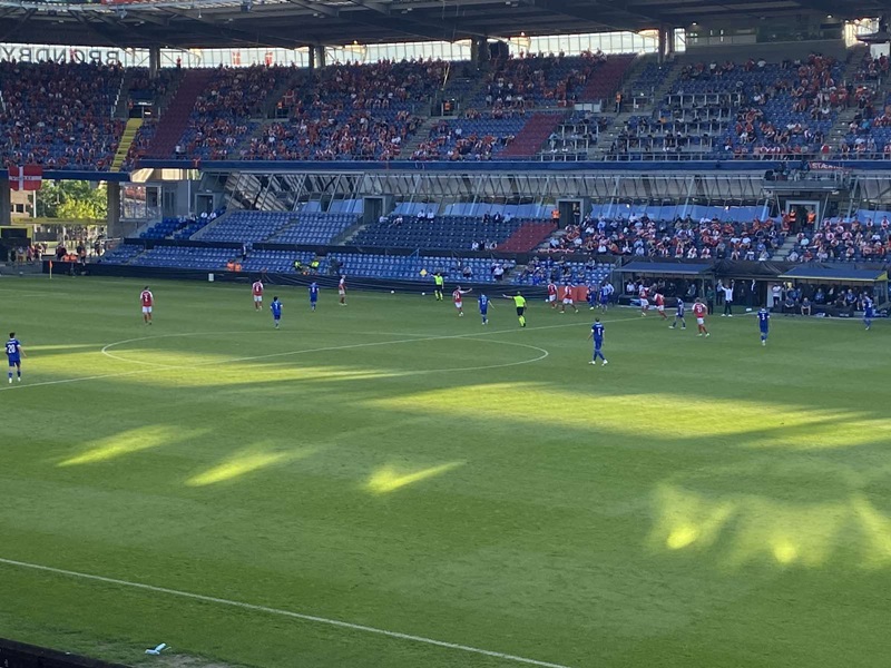 U prvih petnaestak minuta gotovo da nije nikako bilo uzbuđenja, a onda su Danci poveli iz prve ozbiljnije prilike. Nakon kornera, lopta se odbila do Martina Braithwaitea koji glavom pogađa mrežu naših igrača za 1:0.
